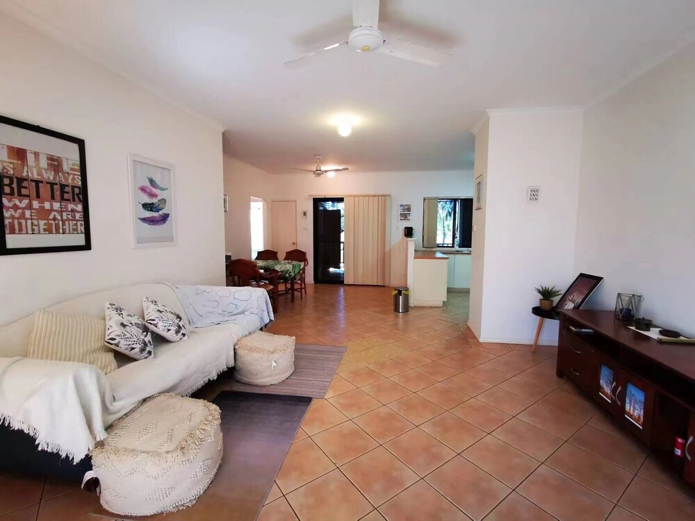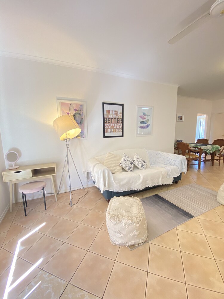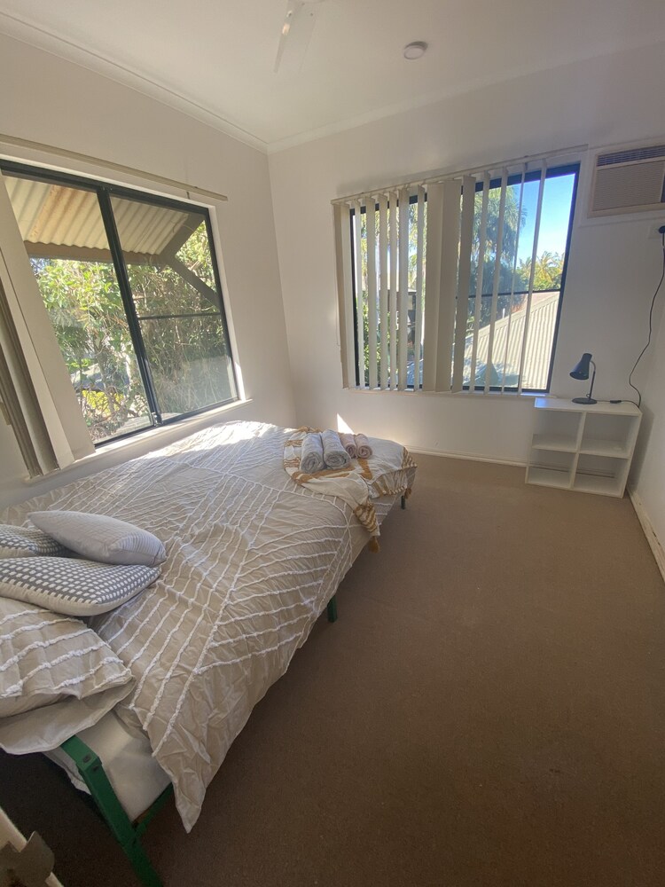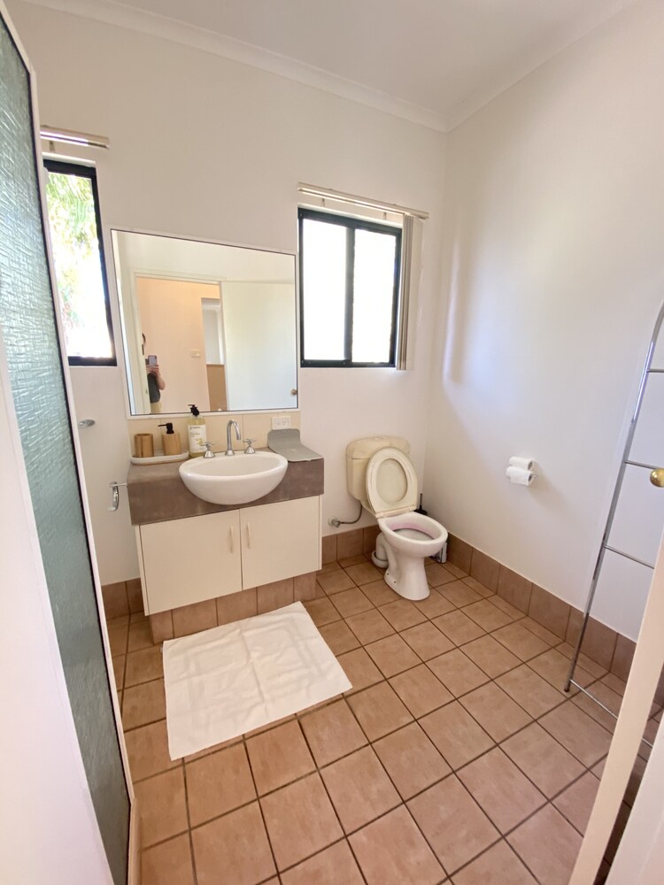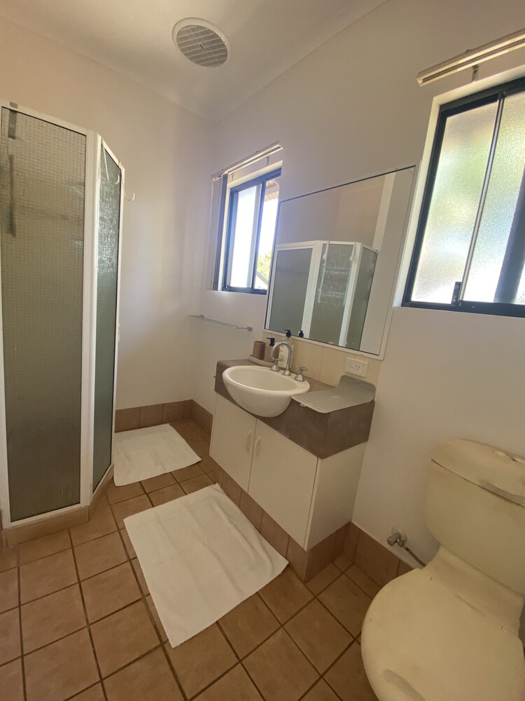 Wake up amongst the trees on this beautiful luxuriously boutique unit upstairs set in a tropical garden. The spacious fully equipped 2-bedroom unit is situated within an 8-minute walk from the airport, 12 mins walk to Broome Boulevard shopping center, and convenient to everywhere in the town. Don’t be afraid of the short distance to the airport, it`s very quiet and peaceful most of the daytime and no airplanes take-off after 8 pm.