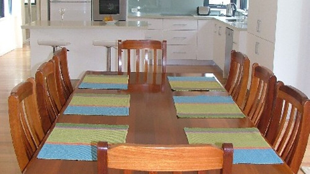The house itself is furnished to an exceptionally high standard. There are four large bedrooms, three with queen size beds and the fourth with two sets of single bunk beds. The master bedroom has a large ensuite with spa bath, whilst the main bathroom has a huge open shower.