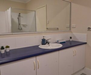 There are 3 bedrooms – ideal for 6 adults and two kids. The main bedroom which looks out on to the swimming pool, features a luscious king-size bed, a walk-in robe and ensuite bathroom. The second bedroom also has a king size bed or optional 2 king singles (please advise your preference once booked). The third bedroom has two comfortable single beds, each with a concealed trundle bed. All beds are new [June 2020], hotel quality and presented with crisp white linen.