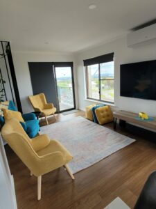 Two storey home with 5 bedrooms and 3 bathrooms. Downstairs has a queen room with ensuite and second bedroom with tri bunk. There is also another bathroom with shower and toilet which doubles as laundry. Downstairs living area has a comfortable lounge and TV with bar fridge, tea, coffee and toast station. Upstairs has 2 queen bedrooms and bedroom 5 has 2 single beds. Bathroom 3 is upstairs. Full kitchen and dining area with a comfortable living space which leads to the amazing verandah where you can relax and take in the views of Middleton Bay, Oyster harbour , Stirling Ranges and the Porongurups.