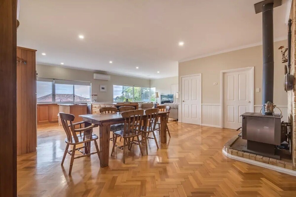 Stunning holiday house with views over town and Princess Royal Harbour. 2 mins walk from the city center and the Albany Visitors Center. Walk to restaurants and tourist attractions. We have 3 Queen rooms, 1 with a private ensuite. All rooms are tastefully appointed with lovely furnishings. We have a bunk room for the kids that sleeps 6 with their own adjoining lounge room. There are 3 lounge rooms and 3 balcony’s on the property. The kitchen is fully equipped and all linen / towels provided