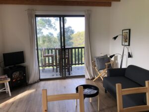 The kitchen has everything you need for a self contained stay – the fridge is only bar size but there is a microwave and stove/oven.