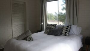 One bedroom with a posturepedic Queen bed and en suite bath room.