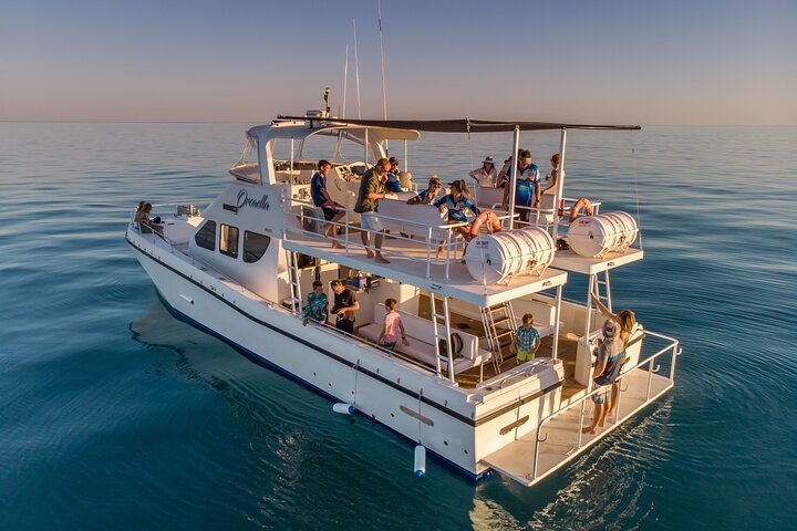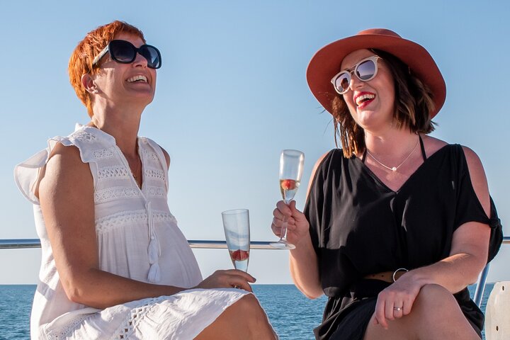 Fancy the warmth and beauty of a magnificent Broome sunset in a small group setting? Why not join us on a 3hour Broome sunset cruise? Cruise along the stunning coast or jump into our boom net for a swim to cool off (subject to conditions). On your return, soak up the stunning sunset of Broome and let Mother Nature create that perfect photo backdrop for you. Meet our friendly team as they treat you to delicious canapes on board โOrcaellaโ our newly appointed 50foot catamaran. You are welcome to bring your drinks in a cooler bag and we will do the rest for you on board! We also have a licensed bar. STRICTLY no red wine, homemade drinks or spirits are permitted. Courtesy bus transfers are available from all accommodation places in Broome. Toilet on board. Departure points vary. For self-drive guests please contact us to confirm your meeting point. Boarding commences 20 minutes before departure.