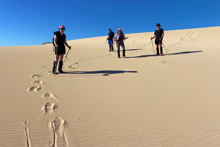 Our Cape Range Explorer-One day adventure starts off with our longest trek of the day (approximately 4-6kms) as we explore one of the many canyons that dissect the North West Cape, affording us breathtaking views of the Ningaloo Coast. After a relaxing, hearty lunch, we then take the opportunity to explore the Ningaloo Coast, trekking pristine beaches and coastal dunes with a refreshing swim or snorkel only metres away. Then, time permitting, we will explore the tranquillity of Mangrove Bay with a short walk or just take a seat in the bird hide and take it all in before we head home to Exmouth.