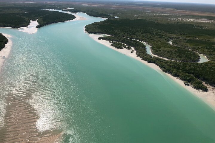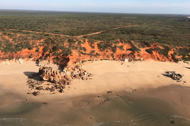 Rising above Broome township, marvel at the azure blue waters, creeks and waterways along the picturesque coastline as you head south and leave Roebuck Bay to Eco Beach Resort, on a 30 minute low level scenic helicopter flight. Upon arrival enjoy time to relax and beach comb followed by a delicious a-la-carte lunch (including a beer, wine or soft drink) and the option to have a refreshing swim at the beach.
