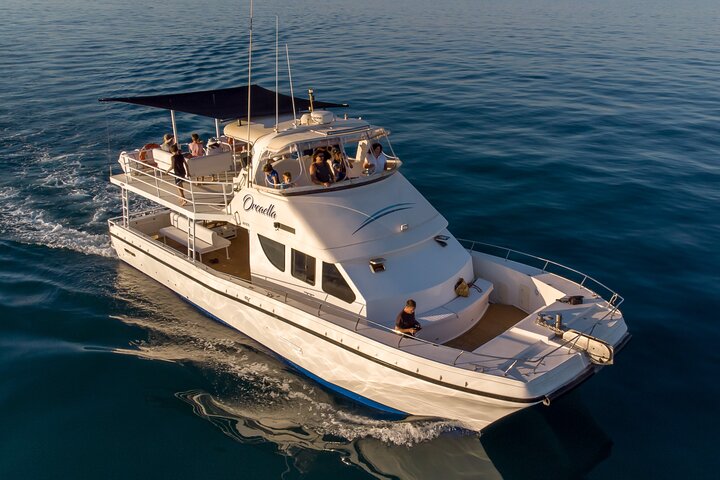 With Broome Whale Watching you can rest assured you are in safe and friendly hands. As Broome’s most experienced and eco-cruise company, we offer you a whale experience that you will never forget. Cruise with a group of guests onboard our spacious 50foot catamaran ‘Orcaella’. Witness the phenomenal migration of whales from various viewing areas. Broome, a hidden whale hotspot, is the highway for over 35,000 humpback whales. Fall in love with the giants of the ocean and discover why their existence is crucial to the survival of our planet. We bring you a wonderful opportunity to encounter marine life while you sip on that well-deserved glass of bubbles. Your adventure awaits you! Courtesy bus transfers are available from all accommodation places in Broome. Toilet on board. Licensed bar on board or bring your own (Red wine or spirits not permitted). Boarding commences 20 minutes before departure.