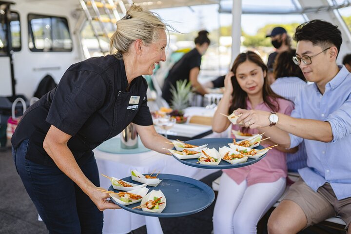A unique and indulgent journey of the senses with Rottnest Cruises Luxe Island Seafood Cruise. This is a deluxe dining experience around Rottnest, showcasing authentic Western Australian flavours, with a menu designed by executive chef Tony Howell. On a 69-ft pleasure boat, cruise turquoise waters as you feast on a 7-course degustation menu of fresh local ingredients and seafood, cooked by your private chef. The centrepiece is one of Western Australiaโs most loved and sustainable seafoods, Western Rock Lobster. Led by experienced crew, join in catching your own lobster or watch on, then dine on the delicacy, freshly cooked for you on deck. Sip on a welcome cocktail, enjoy premium still and sparkling Margaret River wines by Howard Park, plus local and international beers and non-alcoholic beverages, all served complimentary and inclusive as you cruise. While anchored in a calm Island bay, you can swim or relax on float mats, or enjoy the scenery from one of 3 decks.