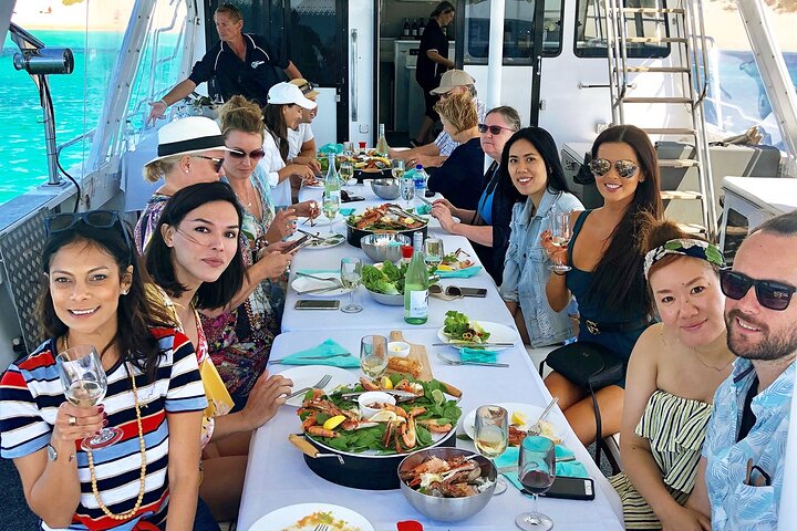 The ‘thrill of the catch’ will be yours to remember forever, as you pull up pots of Western Rock Lobster (or ‘crayfish’, as it is commonly known in Australia). Learn more about this unique and delicious ocean delicacy from our crew, then sit back and enjoy watching an exquisite seafood feast prepared right before you. Hot off the barbecue, your lobster will be served alongside other fresh seafood delights. Enjoy it all, paired with unlimited West Australian wines, beers, and soft drinks, served as you cruise.