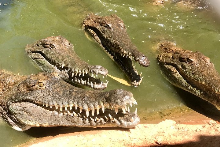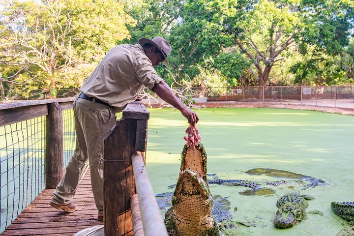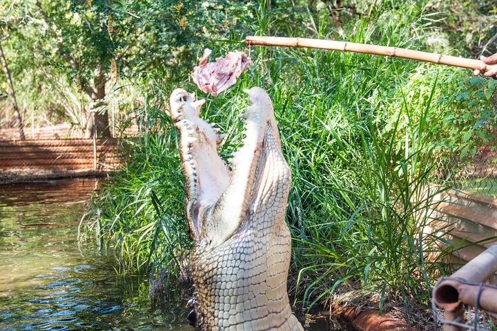 Enter another world through the jaws of a giant saltwater crocodile! The Crocodile Park is home to a variety of birds, reptiles and over 2,500 crocodiles!ย Enjoy our commentary all about Broome & Malcolm Douglas, a wildlife advocate who created over 50 documentaries, during the air-conditioned journey to and from the Crocodile Park. Explore Long Lake, Alligator Pond and Rogue Croc Alley on the famous feeding tour where you will see one of the best displays of large crocodiles in Australia!