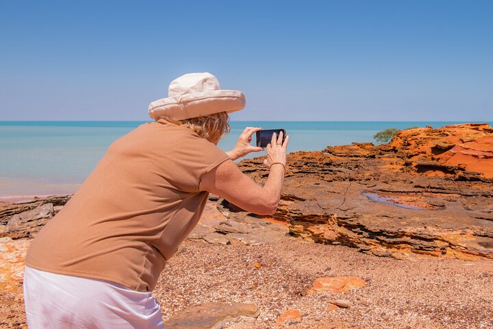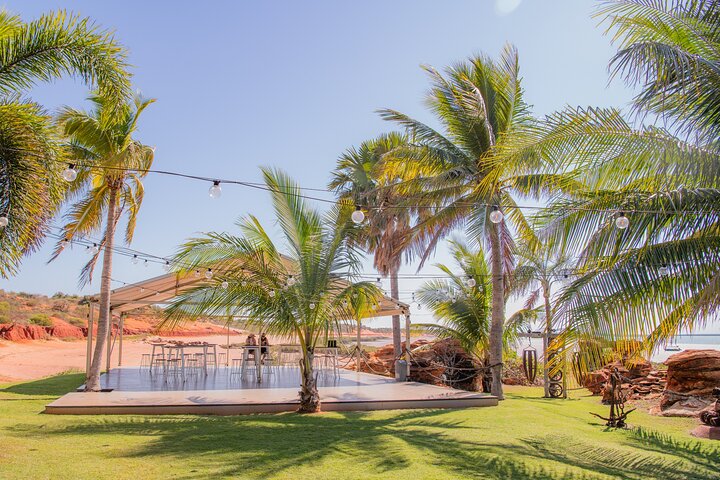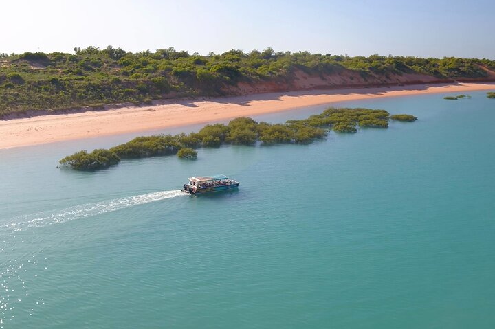 Come out with us in our purpose built shallow landing vessel to explore 120 Million year old dinosaur footprints, secluded bays and meander up the creek inlets. Enjoy an idyllic beach landing and take in the breath taking sites of the rugged Kimberley coastline and the contrasting colours of the bright red cliffs against the aqua waters of Roebuck Bay. Bird watchers will be in their element on this tour with White Breasted Sea Eagles, Brahminy Kites, Ospreys, Pelicans, Jabiru and the thousands of Wader Birds that call Roebuck Bay home. Be amazed by the marine life too! Turtles and dolphins, including the Snub Fin Dolphin, Manta rays, sharks and many more often seen on tour. This is the ultimate Eco Tour with the added bonus of Dinosaur footprints! Enjoy sparkling wine and gourmet platters whilst cruising up the Mangrove Eco System of Dampier Creek. This tour has something for everyone and is the perfect combination of adventure and relaxation.
